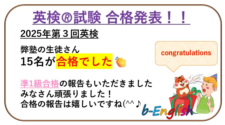 英検🄬試験結果が発表されました